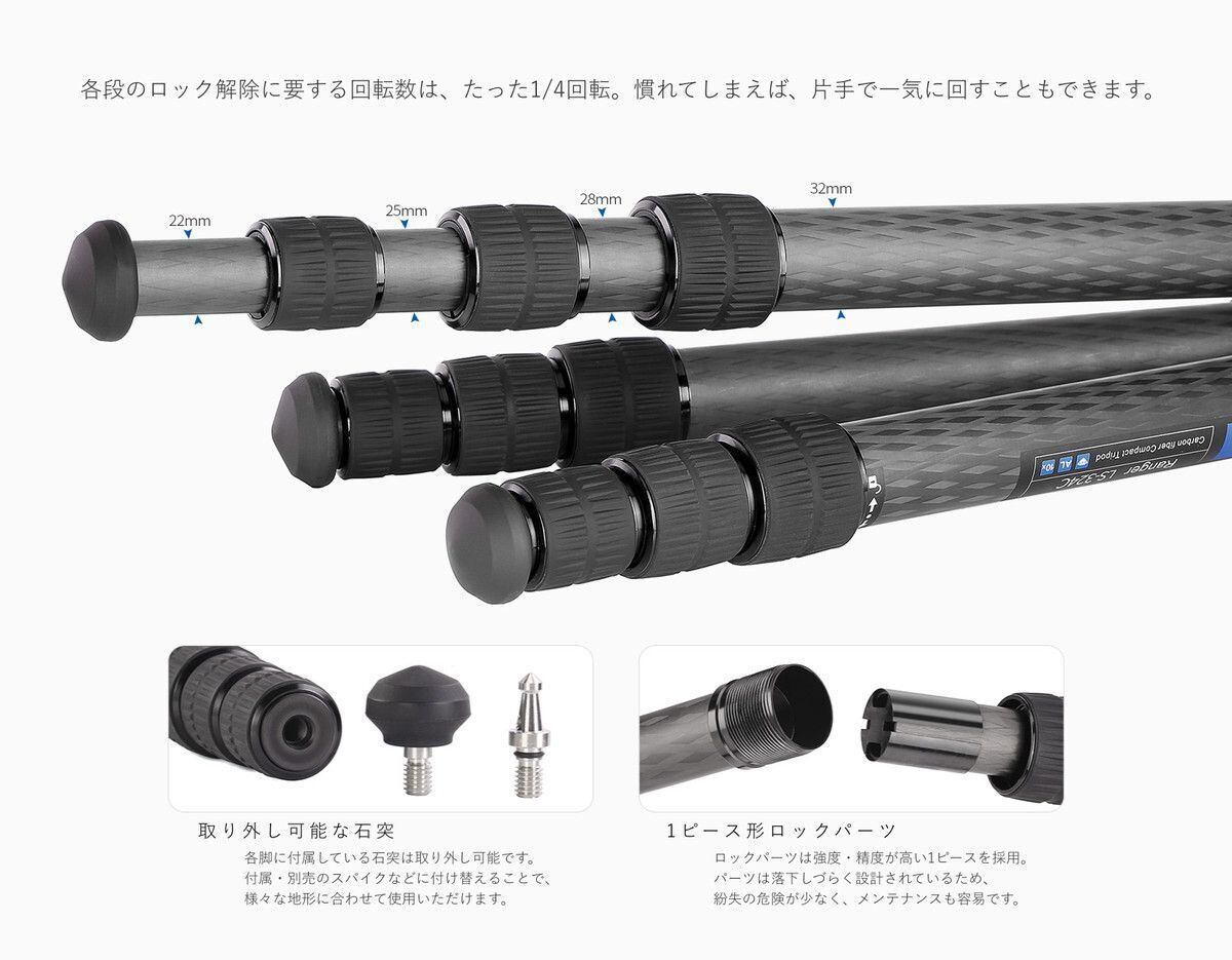 【一年保証】Leofoto(レオフォト) LS-324C+LH-40 カーボン三脚+自由雲台セット[レンジャーシリーズ|最大脚径32mm|4段|3/8,1/4インチ対応|ボール径40mm|ノブタイプ|テンション調整|プレートQP-70N付属|アルカスイス互換]