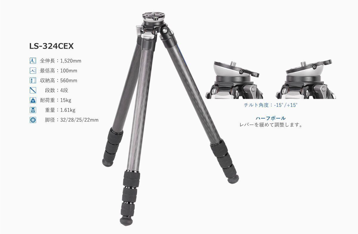Leofoto(レオフォト) LS-324CEX レベリングベース搭載カーボン三脚単品[レンジャー(EX)シリーズ|最大脚径32mm|4段|3/8インチ対応]