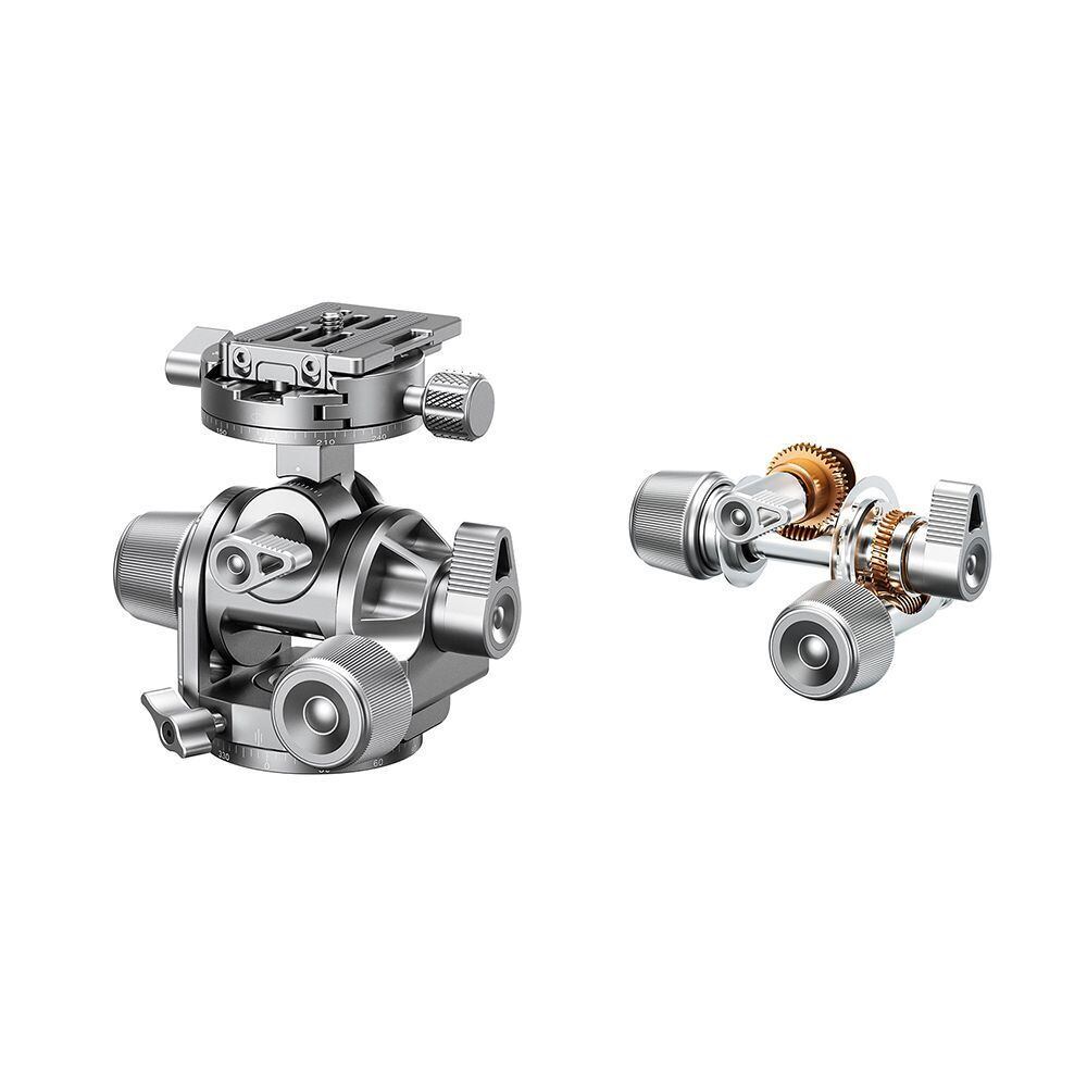 上下、水平調整はギアダイヤルを回すことで少しずつ動かすことができ、細かい構図調整が可能です。 雲台の固定後に構図がずれる心配がありません。